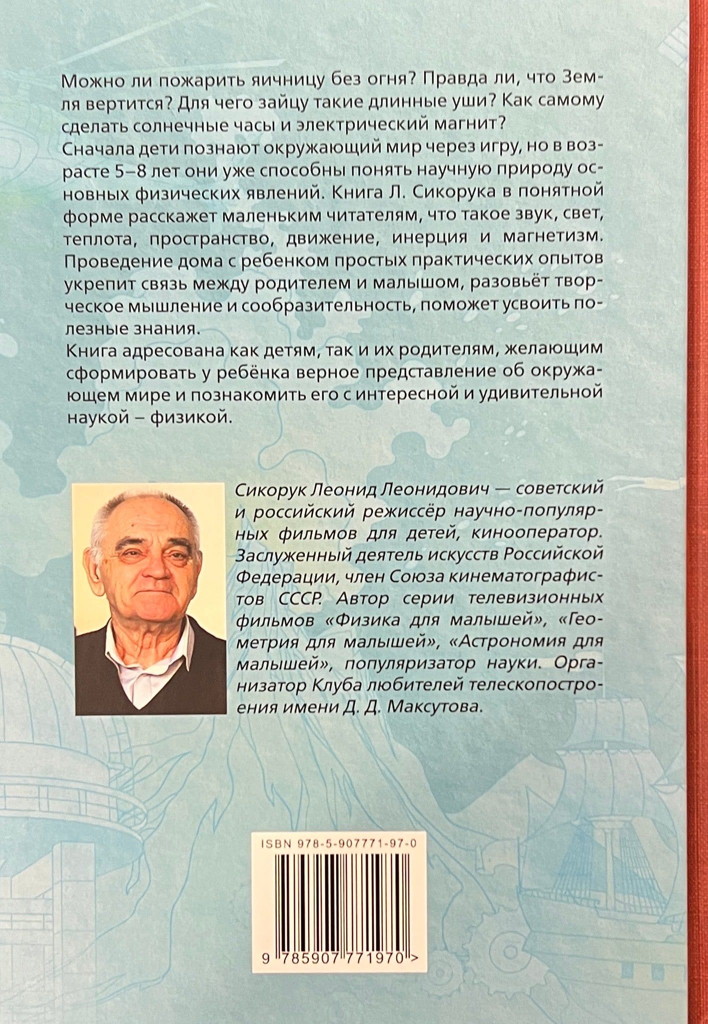 Книга Леонида Сикорука в понятной форме расскажет маленьким читателям, что такое звук, свет, теплота, пространство, движение, инерция и магнетизм. Проведение дома с ребенком простых практических опытов укрепит связь между родителем и малышом, разовьёт творческое мышление и сообразительность, поможет усвоить полезные знания. Книга адресована как детям, так и их родителям, желающим сформировать у ребёнка верное представление об окружающем мире и познакомить его с интересной и удивительной наукой – физикой.
