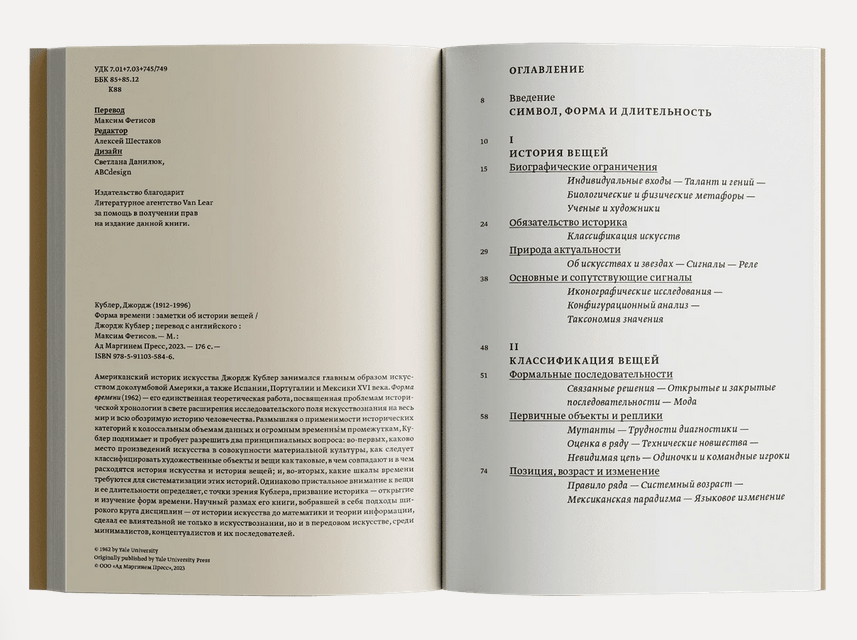 Выдающийся историк искусства Джордж Кублер (1912–1996), автор множества трудов по американской культуре доколумбовой эпохи, посвятил книгу «Форма времени» (1962), свою единственную теоретическую работу, самым фундаментальным основам искусствознания — принципам, согласно которым оно отличает свой предмет от предметов других дисциплин, а также ограничивает и систематизирует свою область исследования во времени и пространстве. Наполненная полемическим зарядом, направленным против биографическо-иконографического подхода к истории искусства, сведения ее к истории художников и сюжетов, книга Кублера была с энтузиазмом принята передовыми художниками 1960-х годов и оказала заметное влияние как на теорию искусства, так и на его практику. На русский язык «Форма времени» переводится впервые.