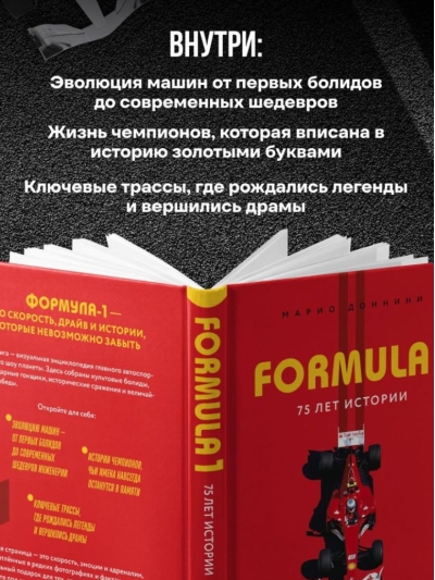 Каждая страница — это скорость, эмоции и адреналин, запечатлённые в редких фотографиях и фактах. Идеальный подарок для тех, кто живёт гонками, мечтает о старте под красными огнями и чувствует запах жжёной резины даже с закрытыми глазами.