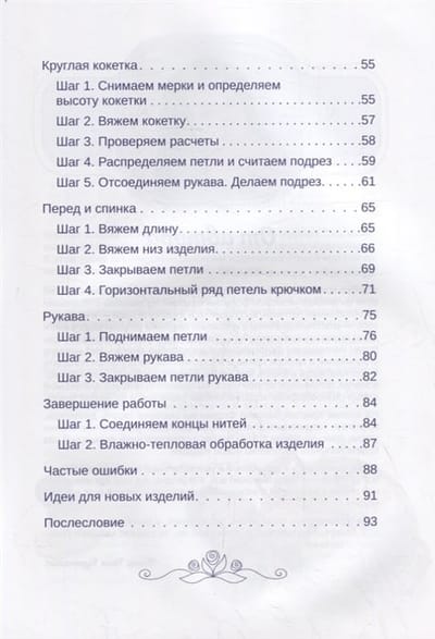 «Жизнь без вязания невозможна!» — считает известный мастер Татьяна Курочкина, и ученицы ее онлайн-школы с этим полностью согласны. Если вы только учитесь вязать или, наоборот, связали не один километр полотна и жаждете новых знаний — эта книга для вас! Круглая кокетка — одна из любимейших техник мастериц, ведь с ее помощью можно связать бесшовные свитера и джемперы на всю семью. А благодаря правильным расчетам и подробному алгоритму действий с этой задачей справится и новичок. Бонус: видеоуроки по вязанию сложных деталей! Доверьтесь мастерству Татьяны, ведь она научила вязать даже своего мужа!
