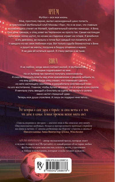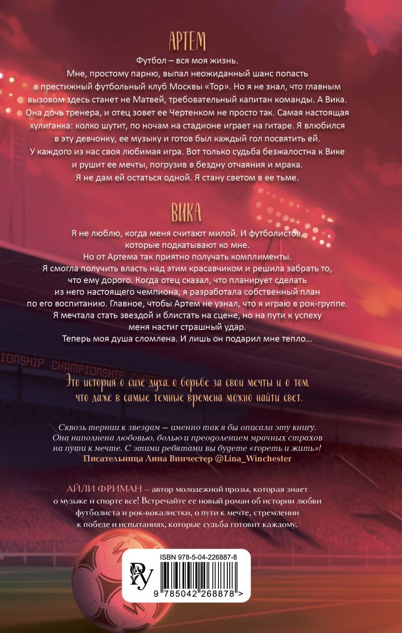 Невероятная спорт-романтика от Айли Фриман — писательницы, которая подарила читателям романы «Любовь под ритмы рока» и «Расправь свои крылья». Стекло, юмор, драма, атмосфера футбола и рок-музыки. Для всех поклонников творчества Эмилии Грин, Ники Сью, Эмилии Вон.