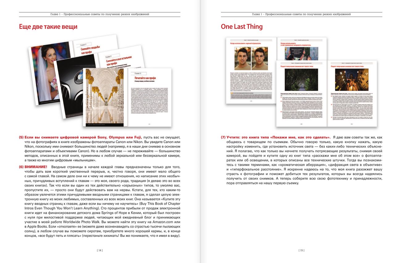 Это — новейшая версия мирового бестселлера № 1 по цифровой фотографии всех времен! Мировой хит Скотта Келби, отмеченный наградами и переведенный на десятки языков. И все потому, что книга реально показывает, как получить фотографии профессионального качества, используя те же приемы, что и лучшие современные фотографы (удивительно, но это проще, чем вы могли подумать)!Это книга типа «Покажи мне как». Автор дает читателю советы так же, как своему товарищу по съемкам. Обычно говорит только, какую кнопку нажать, какую настройку изменить, где установить источник света — без сложных технических подробностей.
