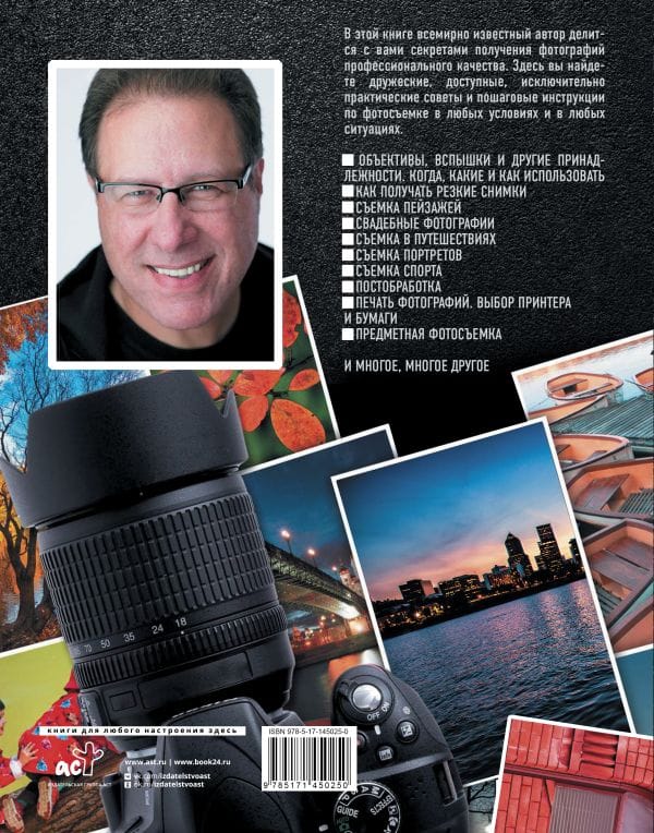 «Фотография. Просто и понятно» – самая практичная в мире книга по фотографии, мировой хит, отмеченный наградами и переведенный на десятки языков. Книга реально показывает, как получить фотографии профессионального качества, используя те же приемы, что и лучшие современные фотографы. Автор всегда с вами на съемках — отвечает на ваши вопросы, дает советы и делится секретами точно так же, как со своим другом — без всяких технических подробностей и технического жаргона — какую кнопку нажимать, какую и когда выбирать настройку. Дает также дружеские советы по приобретению фототехники — на что имеет смысл тратить деньги и на чем можно сэкономить. Книга предназначена фотолюбителям, которые хотят повысить качество своих снимков.