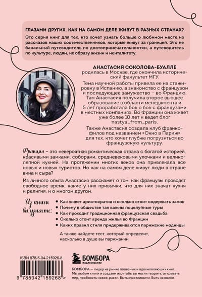 Книга «Франция изнутри» посвящена всем, кто влюблен в страну шарма и легкости и хочет узнать все о быте и нраве французов. Анастасия Соколова-Буалле, гид и историк из Парижа, станет для вас личным проводником и поможет разобраться во всех тонкостях французской культуры.