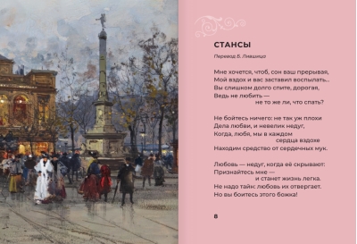«Поэзия — это музыка души, а французская поэзия — её самый пленительный романс», — писал Вольтер. Через любовную лирику, философские размышления и смелые эксперименты с формой французская поэзия раскрывает свою неповторимую мелодику, глубину и страсть. Каждое стихотворение — это диалог эпох, игра смыслов и оттенков, приглашающая читателя в путешествие по вечному саду слов.