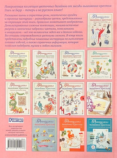 Невероятная коллекция цветочных дизайнов от звезды вышивания крестом Элен ле Берр. Роскошные пионы и страстные розы, экзотические орхидеи и скромные настурции - разнообразие цветов, представленных на страницах этой книги, буквально захватывает воображение. Детализированные сложные композиции, минималистичные рисунки и лаконичные наброски с цветами, пожеланиями и инициалами - всё это великолепие ждет вас в данном издании. Все отшивы сопровождаются цветными схемами. В конце книги представлены подробные пошаговые инструкции по выполнению готовых изделий, а также справочная информация, которая позволит подобрать мулине в любом магазине.