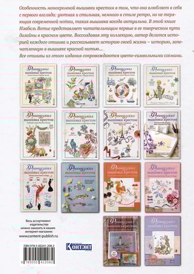 Французская вышивка крестом. Красные монохромы Изабель Вотье. Более 30 крупных схем