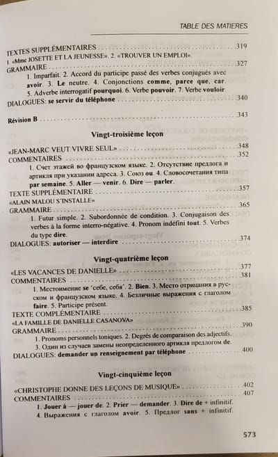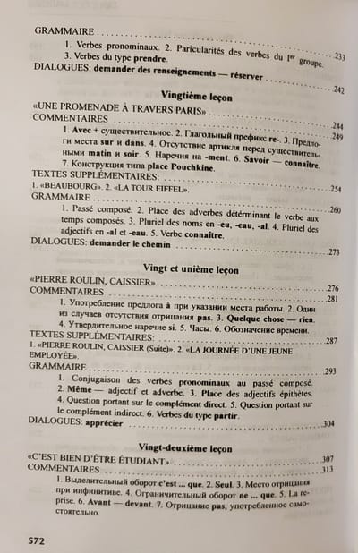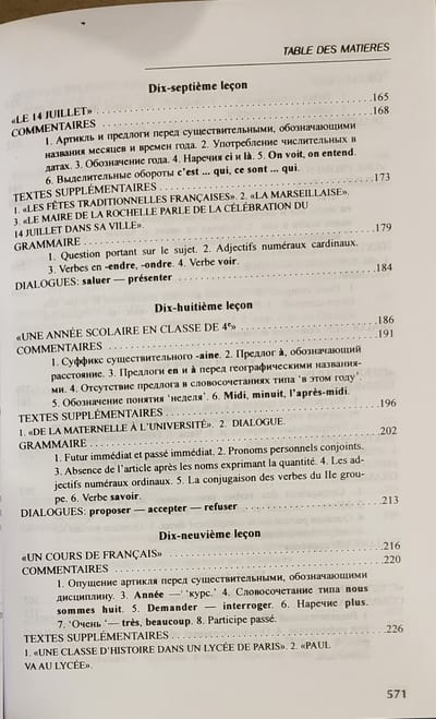 Настоящий учебник выдержал 20 изданий и является стабильным учебником для начинающих. Его цель - привить навыки правильного произношения, дать прочные знания основ грамматики, выработать языковые компетенции: научить писать и говорить, используя лексику и грамматические формы и конструкции французского языка в пределах пройденной тематики; подвести к чтению французской литературы в оригинале. Достоинство учебника - четкая и последовательная система организации материала; наличие большого количества упражнений различного типа, как грамматических, так и лексических. Грамматические правила и лексико-грамматические комментарии изложены на русском языке в четкой и доступной форме.