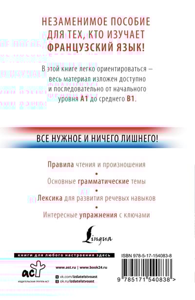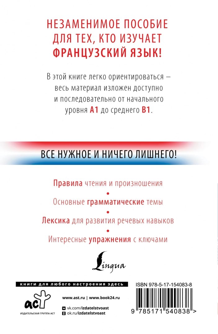 Вы быстро научитесь читать на французском, разберетесь в артиклях и временах и научитесь строить простые предложения благодаря особому способу подачи материала, который учитывает психологические особенности освоения иностранного языка. Множество примеров, наглядных таблиц и упражнений с ключами позволят закрепить изученный материал. Пособие подходит всем, кто только начинает изучать французский язык.