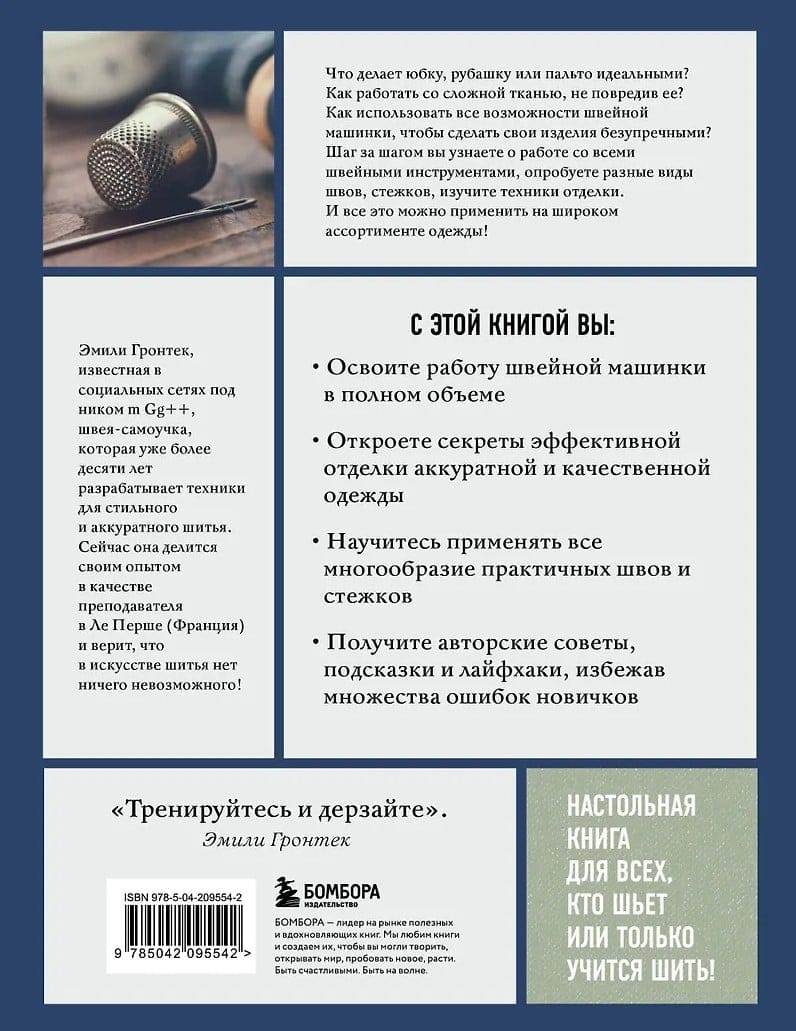Идеальный гид по шитью для новичков и профессионалов! Опытная швея и преподаватель Эмили Гронтек делится проверенными и эффективными техниками шитья и отделки, которые помогут сделать любую одежду безупречной. Под чутким руководством автора вы освоите работу со швейной машинкой, научитесь правильно обрабатывать ткань, примените все виды швов и стежков для идеального изделия.