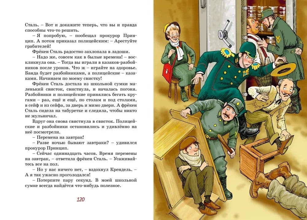 Городок Гдеугодно – обычный шведский провинциальный городок. В этом городке живёт фрёкен Эмма Сталь. Наверняка ничего особенного, обыкновенная фрёкен, каких в Швеции немало, подумаете вы. А вот и нет! Фрёкен Сталь – самая удивительная фрёкен на свете! Она обладает превосходным чувством юмора, незаурядным аналитическим умом и любит разгадывать детективные загадки. Её не так-то просто обвести вокруг пальца! Не удалось это сделать и банде разбойников, которые с недавних пор обосновались в городке…