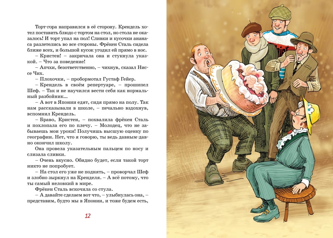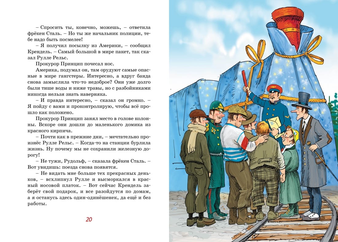 У Кренделя Петерсона, разбойника из провинциального шведского городка Гдеугодно, день рождения. И как вы думаете, что он получил в подарок? Паровоз с двумя вагонами! Да не игрушечными, а самыми настоящими. Жители городка в недоумении: как быть с таким подарком?.. И тут на помощь всем пришла фрёкен Сталь, которая любит весёлые приключения и озорные затеи. Она предложила устроить соревнование между паровозом и… автобусом. Ну что же, на старт! Большая гонка начинается!