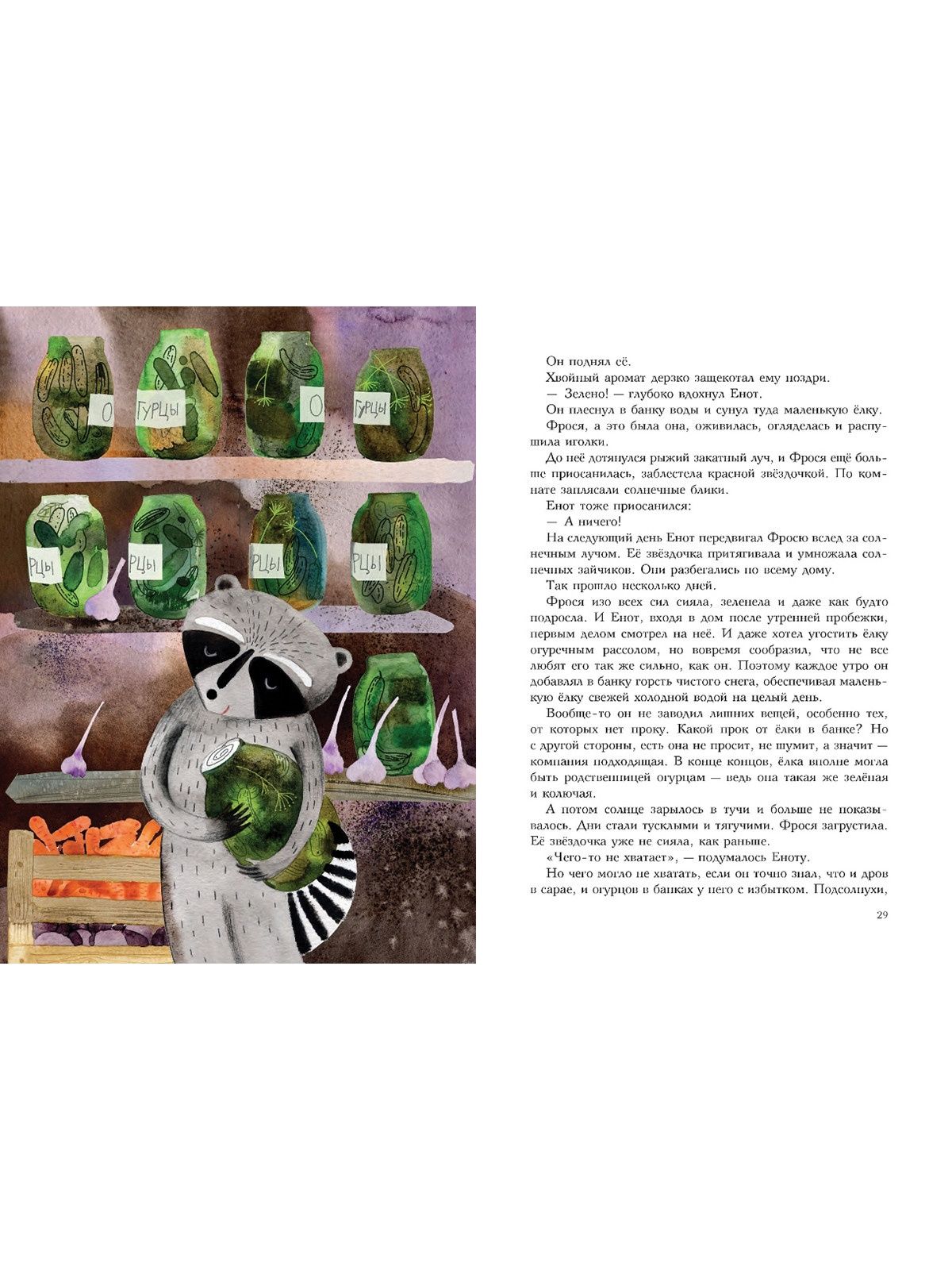 Когда маленький лесной городок припушило первым снегом - все изменилось. Пришла пора готовиться к Новому году! Доставать с антресолей новогодние украшения, слушать праздничные песни, готовить подарки и, самое главное, дарить друг другу радостное настроение! Но что делать, если твой сосед - вечно хмурый Енот, который не видит в празднике никакого проку? Как подарить хорошее настроение тому, кто не хочет принимать подарки. Кажется, смягчить сердце Енота под силу только маленькой елочке Фросе. Самая новогодняя сказка Ольги Фадеевой раскроет тайну этого волшебства!