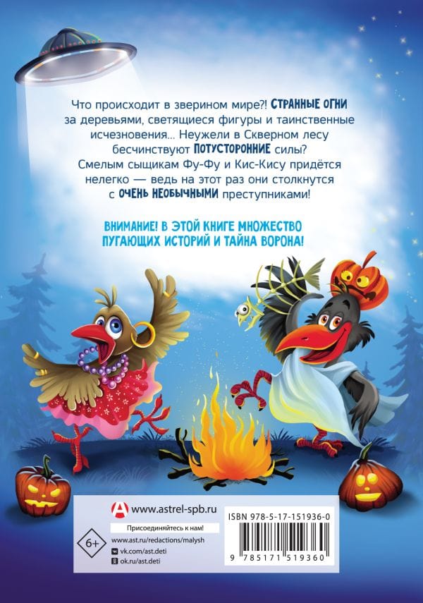 «Ночные истории, или У-у-у, страшно!» — самая таинственная книга популярного цикла Кати Матюшкиной и Кати Оковитой о детективах псе Фу-Фу и коте Кис-Кисе. Читателей ждут совсем не страшные, но очень весёлые истории, свирепые традиции, таинственные исчезновения, захватывающие расследования, невероятные приключения, отважные и отзывчивые герои и, конечно, множество смешных ситуаций. Красочные забавные иллюстрации и интерактивные задания от авторов: Кати Матюшкиной и Кати Оковитой. Прекрасная возможность познакомить детей с праздником Хеллоуин. Идеальная история для семейного чтения.