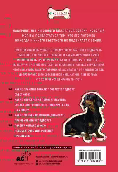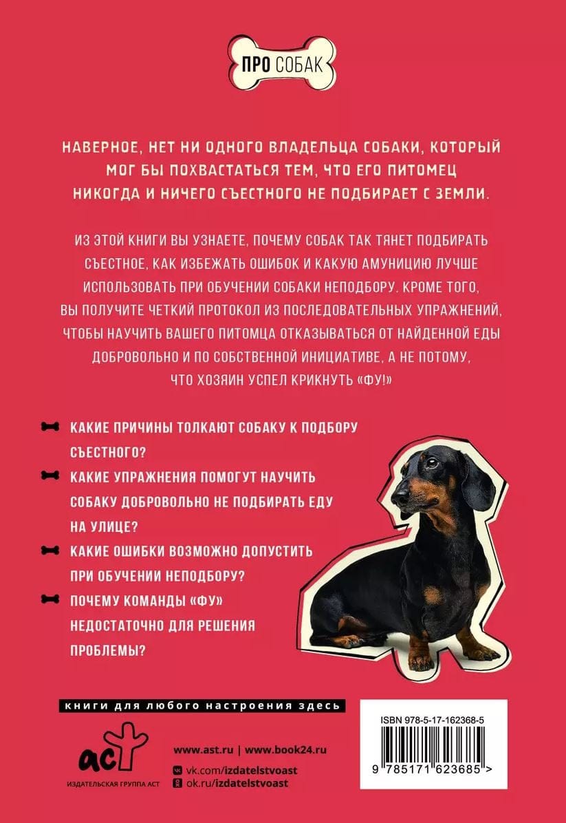 Из этой книги вы не только узнаете, почему собак так тянет подбирать съестное, — она также даст вам четкий протокол из последовательных упражнений, освоив которые, вы научите вашего питомца отказываться от найденной еды добровольно и по собственной инициативе, а не потому, что хозяин успел крикнуть «‎Фу!»‎