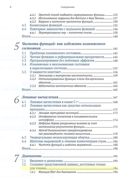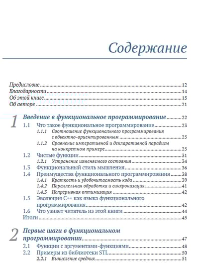 Хорошо написанный код легче тестировать и использовать повторно, его проще распараллелить, и он меньше подвержен ошибкам. Владение приемами функционального программирования поможет вам писать код, соответствующий требованиям к современным приложениям, проще выражать сложную логику программ, изящно обрабатывать ошибки и элегантно оформлять параллельные алгоритмы. Язык C++ поддерживает функциональное программирование с использованием шаблонов, лямбда-выражений и других своих базовых возможностей, а также алгоритмов из библиотеки STL. Функциональное программирование на C++ поможет вам раскрыть свои способности к функциональному мышлению, продемонстрировав новый взгляд на программирование на C++. В этой книге вы найдете десятки примеров, диаграмм и иллюстраций, описывающих идеи функционального программирования, которые вы сможете применять в C++, включая ленивые вычисления, объекты-функции и вызываемые объекты, алгебраические типы данных и многое другое. В процессе чтения вы увидите множество практических сценариев применения методов функционального программирования, где они могут принести наибольшую выгоду.