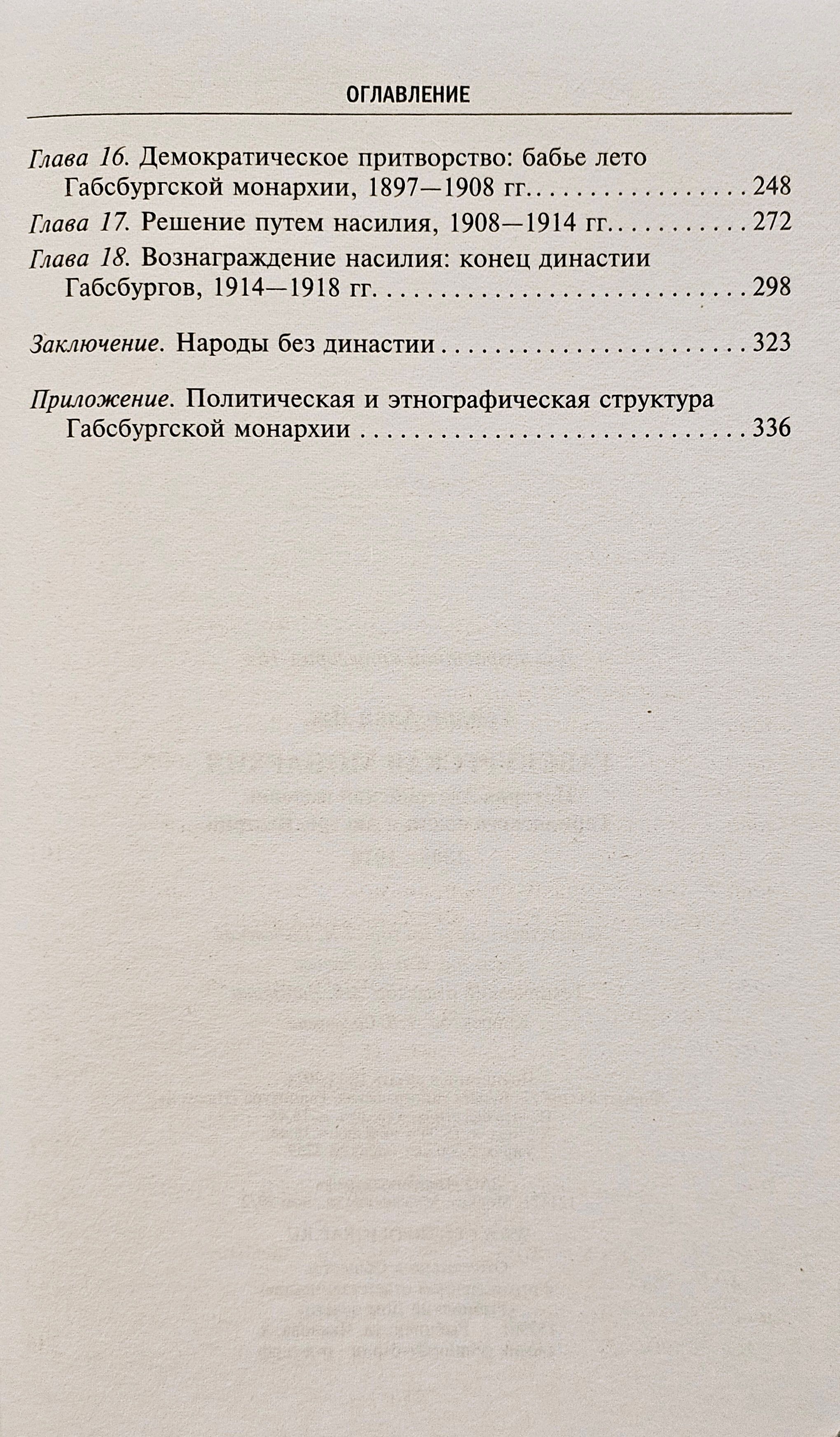 Книга британского историка Алана Дж. Тейлора — это всеобъемлющее исследование последнего столетия монархии Габсбургов от Наполеоновских войн до Первой мировой войны, позволяющее лучше понять исторические процессы, протекавшие не только в «землях Дунайской долины», но и в Европе в целом. Автор исследует уникальный характер государства, которое представляло собой совокупность наследственных владений Дома Габсбургов, населенных народами разных языков и вероисповеданий, описывает его политическое устройство и этнографическую структуру. Сосредоточив внимание на крупных исторических фигурах и событиях, Тейлор прослеживает процесс объединения империи после проведения Венского конгресса, радикальные преобразования 1848 года, имперский кризис, вызванный поражением в Австро-прусской войне, а также подъем венгерского национального движения и неминуемый распад империи в 1918 году.