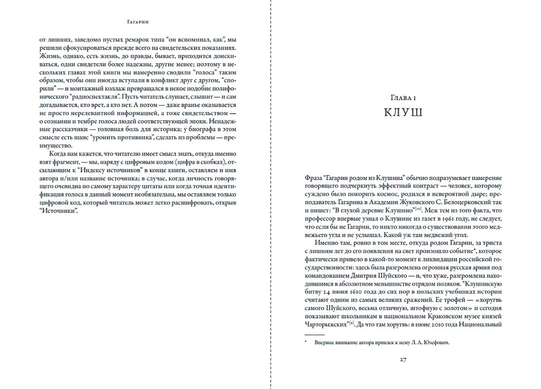 Хроника жизни Гагарина (1934–1968) и реконструкция его мировоззрения и мнений основаны на личных интервью с близкими друзьями главного героя, архивных документах, мемуарах очевидцев событий и журналистских материалах.