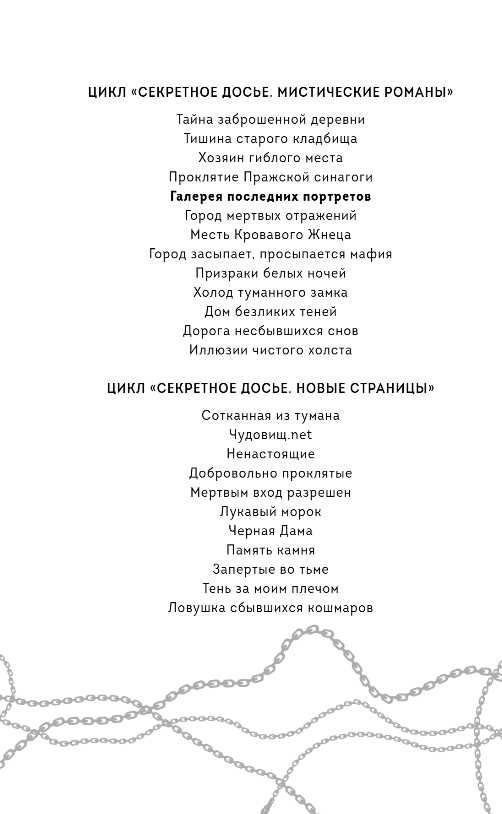 Принимая участие в исследовании сверхъестественного, Саша не представляла, что однажды опасность будет угрожать ей самой. С некоторых пор за спиной девушки появилась тень, сводящая ее с ума, а среди старых книг Александра нашла альбом с портретами женщин ее рода, сделанными накануне их смерти. Неужели проклятье настигло Сашу и даже друзья не смогут ей помочь?..