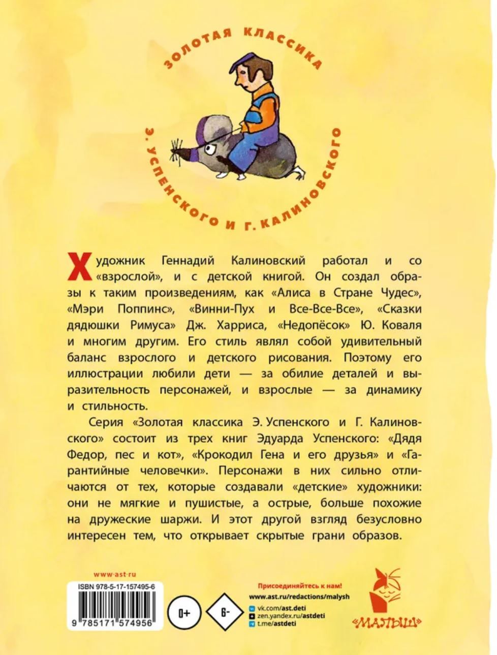 «Гарантийные человечки» — третья книга в серии «Золотая классика Э. Успенского и Г. Калиновского», наряду с главными произведениями Э. Успенского «Дядя Фёдор, пёс и кот» и «Крокодил Гена и его