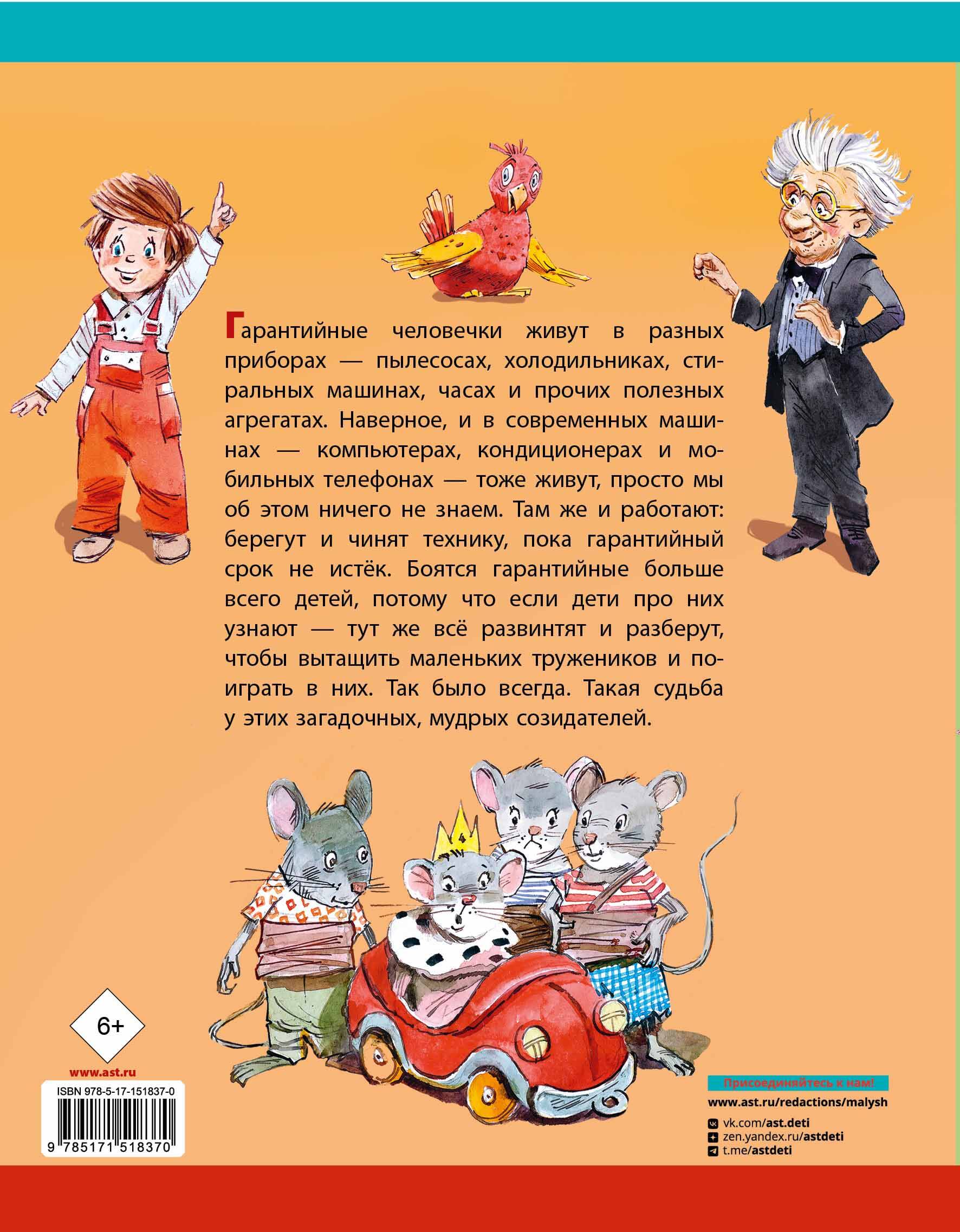 Повесть Эдуарда Успенского «Гарантийные человечки» — о маленьких мастерах, которые живут и работают в разных полезных механизмах: пылесосах, холодильниках, даже в грузовых машинах. О них никто не знает, кроме директоров разных заводов и фабрик. Жизнь у гарантийных трудная и опасная, ведь им приходится не только в тайне от людей заботиться об их бытовой технике, но и беречься от мышей и, особенно, детей. Почему? Об этом вы узнаете, прочитав повесть «Гарантийные человечки».