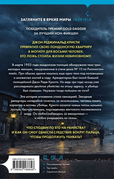 В марте 1953 года лондонская полиция обнаружила тела трех молодых женщин, замурованные в стене дома № 10 по Риллингтон-плейс в Ноттинг-Хилле. При обыске здания нашлись еще одно тело под половицами и множество костей в саду. Арендатором был тихий бывший полицейский Джон Редж Кристи. Но ведь три года назад уже расследовали двойное убийство по этому адресу, и убийца был повешен. Неужели тогда поймали не того?