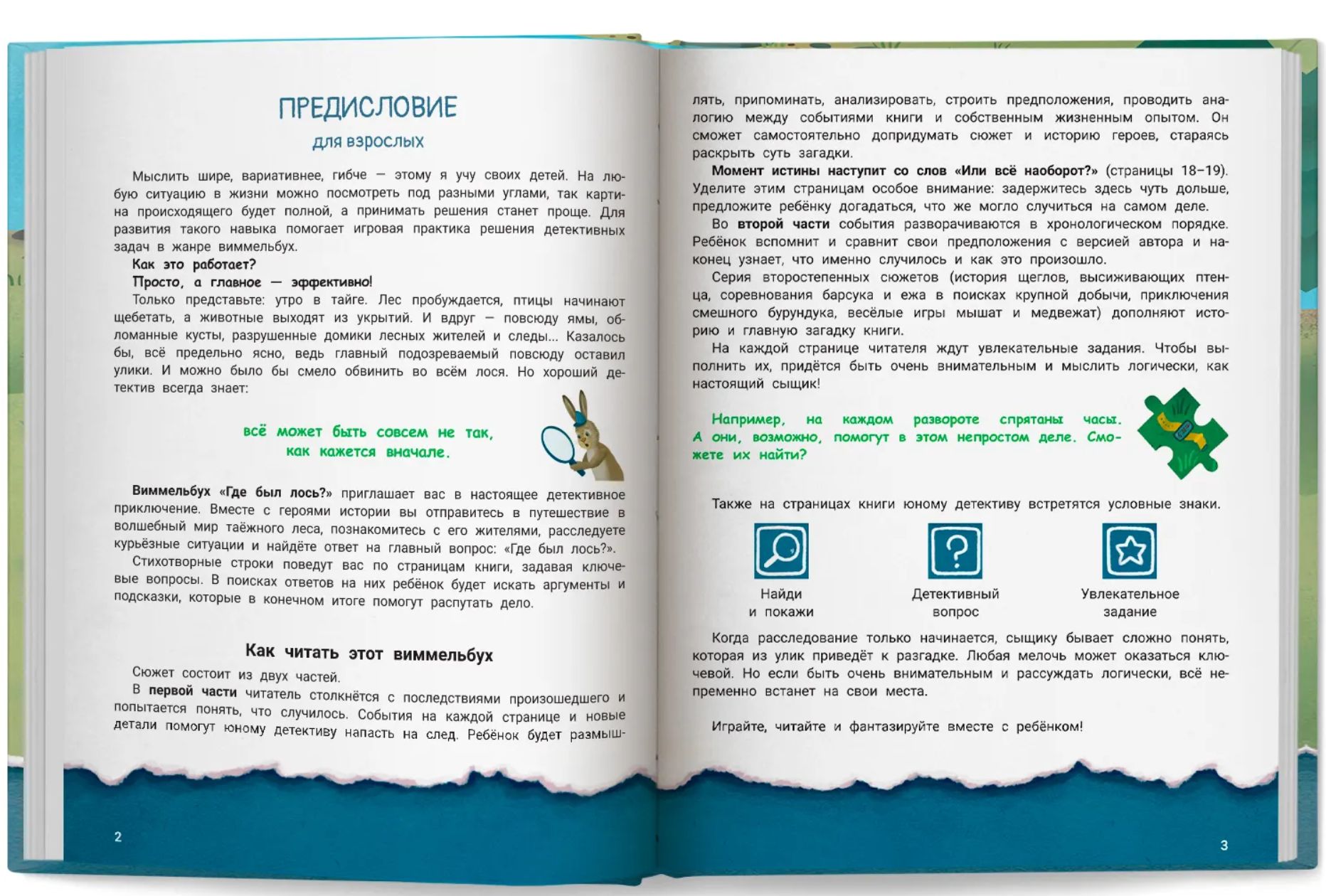 В поисках ответа на главный вопрос читателю придётся быть очень внимательным и мыслить не только логически, но и творчески. Интересные задания увлекут ребёнка и не дадут заскучать, помогут развить речь, разбудят воображение и расширят кругозор. Работа с виммельбухом не предполагает чётких возрастных ограничений. Чем старше ребёнок, тем больше сценариев игры можно придумать.