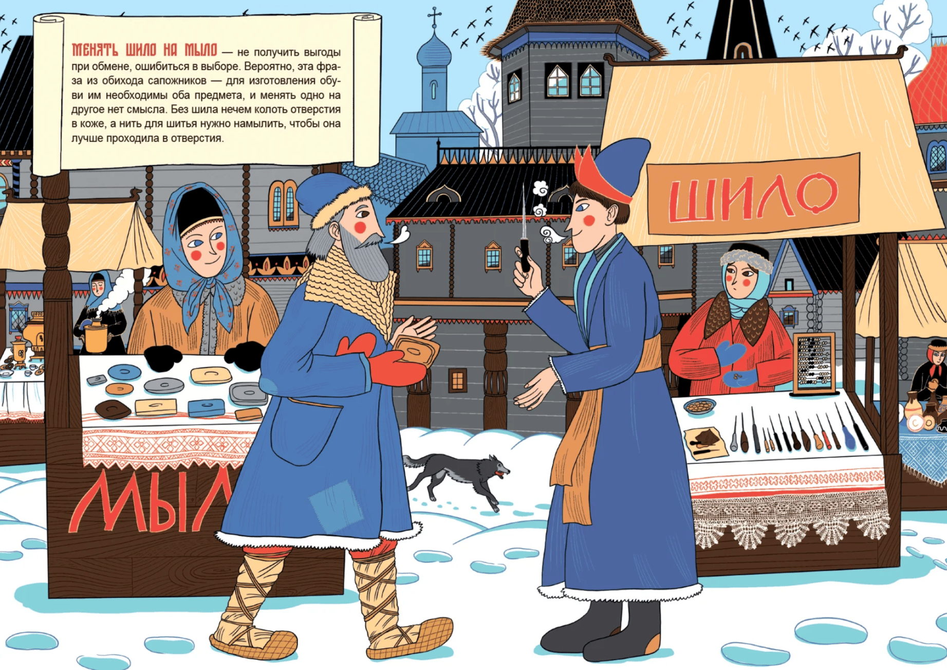 Красочные иллюстрации, вдохновлённые сказками, традиционными костюмами и старинной архитектурой, подчёркивают, что пословицы — неотъемлемая часть нашего наследия, как и народные сказания.