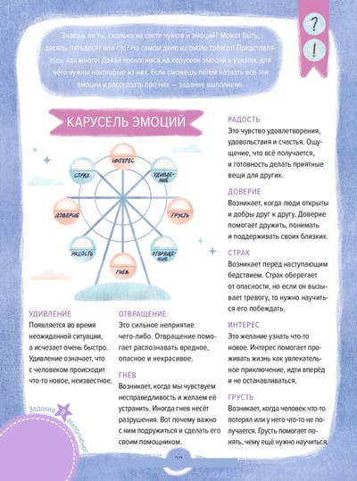 Задания для детей от 5 лет от доктора психологии в игровой форме помогут узнать, какие бывают эмоции, как они проявляются в теле и на лице, как с ними подружиться, чтобы смотреть на мир уверенно и радостно.