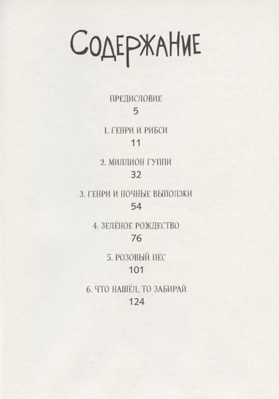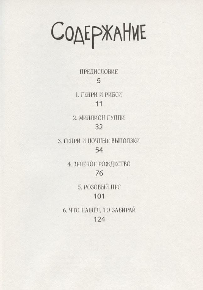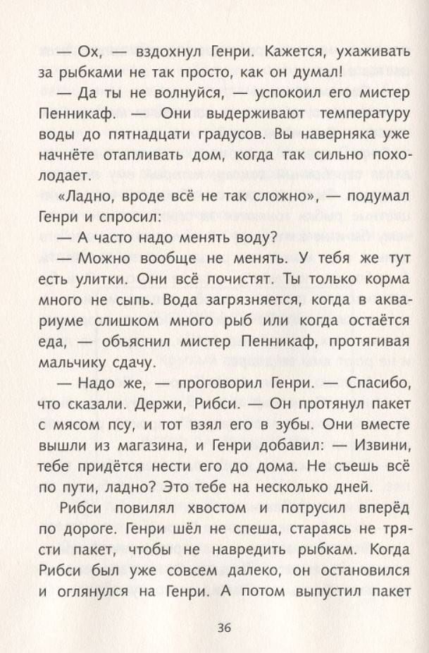 В книге шесть рассказов. В первом Генри знакомится с Рибси и везет его домой на автобусе. Эту поездку пассажиры запомнят надолго. А Генри с Рибси доставит домой полицейская машина. Во втором рассказе Генри заводит рыбок гуппи. Неожиданно гуппи начинают размножаться с такой быстротой, что заполняют все банки в доме и буквально выселяют Генри из его комнаты. В третьем рассказе из-за Генри теряется новенький футбольный мяч одного вредного мальчишки. Сосед-рыбак предлагает Генри подзаработать, но, чтобы получить нужную сумму, Генри придется поймать больше тысячи ночных выползков. В четвертом рассказе Генри достается главная роль в рождественской оперетте, а Генри страшно не хочется ее играть. Он придумывает, как увильнуть от участия в постановке, но ни один его план не срабатывает. Избежать позора помогает случай… и Рибси. В пятом рассказе Генри показывает Рибси на выставке собак. Пес ведет себя безобразно. И надежда Генри выиграть серебряный кубок тает с каждой минутой. В шестом рассказе дружбе Рибси и Генри предстоит пройти серьезное испытание, так как объявился прежний хозяин Рибси.
