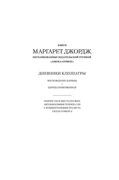О могущественном и эгоистичном Генрихе VIII написано много: он рассорился с папой римским и создал собственную церковь, женился на шести женщинах и двух жен отправил на эшафот, казнил своего друга, разграбил монастыри, мечтал о сыне, пренебрегая своими дочерями, потворствовал своему чревоугодию и в конце концов сошел в могилу, побежденный тяжким недугом. Однако в своем великолепном и монументальном романе Маргарет Джордж представляет нам историю Генриха VIII такой, какую он сам мог бы рассказать в мемуарах, дополненных дерзкими комментариями его шута и доверенного лица Уилла Сомерса. Блестяще сочетая исторические факты и художественное повествование, обладая тонким пониманием преимуществ и опасностей власти, автор показывает нам знаменитого монарха во всех его человеческих проявлениях — грозным и жалким, любящим и жестоким, щедрым и несправедливым.