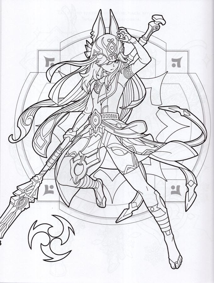 Genshin Impact. Герои вселенной Геншин. Раскраска (бирюзовая)