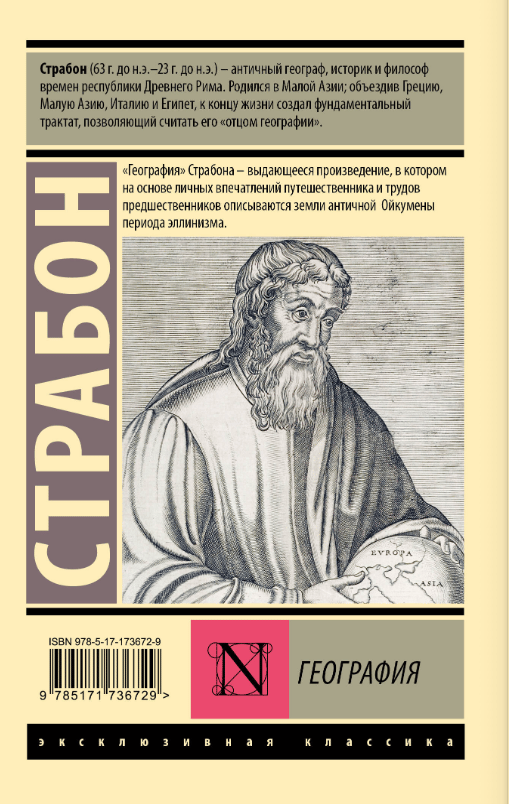 Страбон (63 г. до н.э.– 23 г. до н.э.) — античный географ, историк и философ времен республики Древнего Рима. Родился в Малой Азии; объездив Грецию, Малую Азию, Италию и Египет, к концу жизни создал фундаментальный трактат, позволяющий считать его «отцом географии».