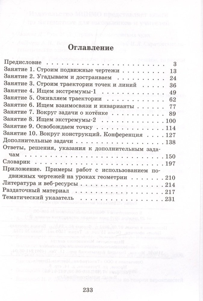 Девятнадцатая книжка серии «Школьные математические кружки» посвящена решению геометрических задач с помощью программ динамической геометрии—«Геогебра», «Математический конструктор», «Живая математика». Изучив книгу, школьник научится работать в программе динамической геометрии, строить и изучать подвижные чертежи, освоит основные приёмы математического эксперимента при решении сложных задач—выдвижение, проверка и уточнение гипотез,—а также повторит основные темы и идеи курса планиметрии. Книжка адресована школьным учителям математики и руководителям математических кружков.