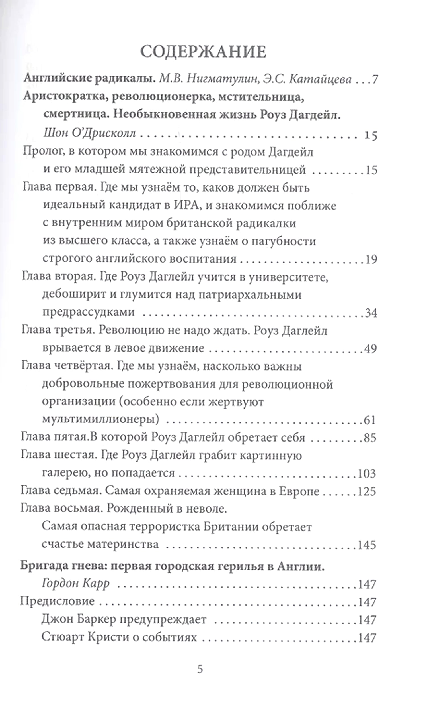 Многие склонны считать Англию страной консервативной, сонной, не склонной к радикализму. Во многом легендарные молодежные бунты 1960-х обошли эту землю стороной. Тем не менее, и у англичан имеются свои собственные примеры удивительного мужества, тяги к борьбе против капитализма, верности революционным и освободительным идеалам. Эта книга рассказывает о том, как британские радикалы (часто происходившие из аристократических семейств) бросали всё и уходили в подполье. Особое внимание авторы уделяют историям «Бригады гнева» (первой настоящей городской герильи в Англии) и Роуз Дагдейл — английской аристократки, вступившей в ИРА и всю свою жизнь посвятившей вооруженной борьбе за свободу Ирландии.
