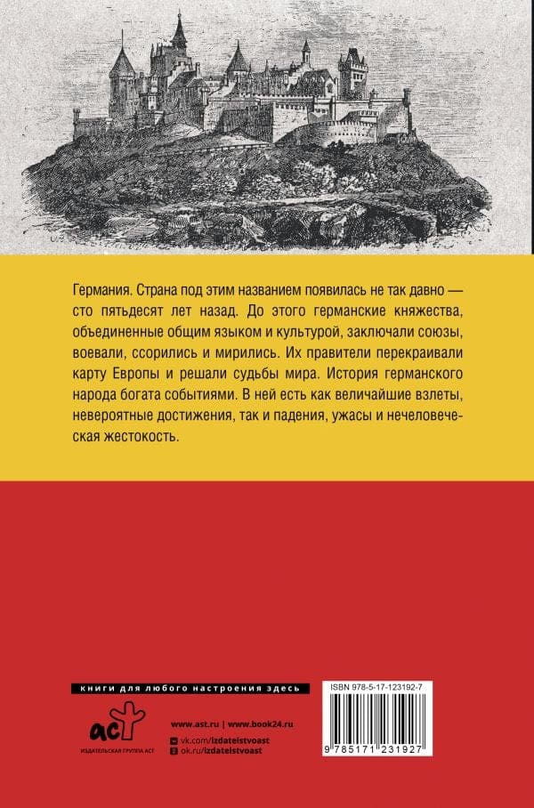 Германия. Страна под этим названием появилась не так давно. Сто пятьдесят лет назад. До этого германские княжества, объединённые общим языком и культурой, заключали союзы, воевали, ссорились и мирились. Их правители перекраивали карту Европы и решали судьбы мира. История германского народа богата на события. В ней есть как величайшие взлеты, невероятные достижения, так и падения, ужасы и нечеловеческая жестокость.