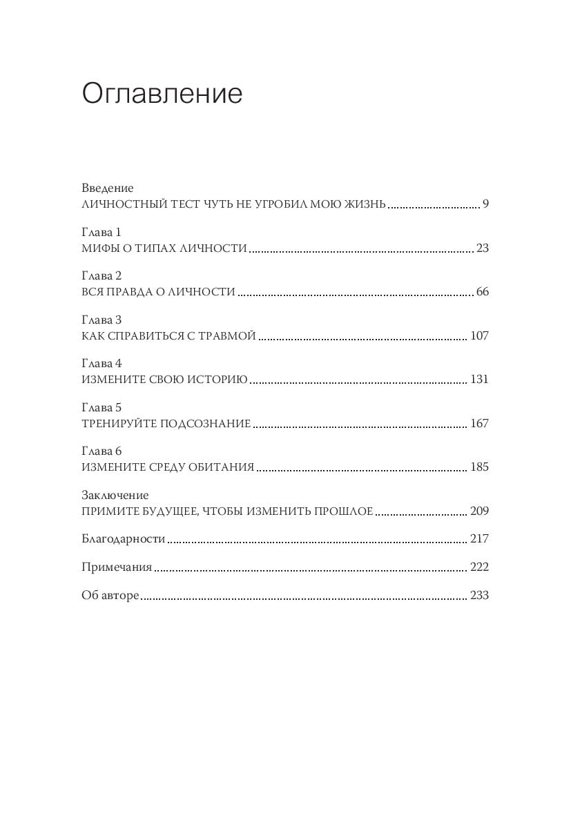 Личностные тесты вредят вашему развитию. Навечно отнеся себя к какому-то типу, вы сознательно ограничиваете свои возможности, вместо того чтобы действовать всегда так, как того требуют конкретные обстоятельства и цели. Вы в цепких лапах прошлого. Книга шаг за шагом освободит вас от ограничивающих убеждений — своих и чужих. В ней задаются вопросы, которые заставляют задуматься о своей личности и о будущем, которое вы выбираете сами.
