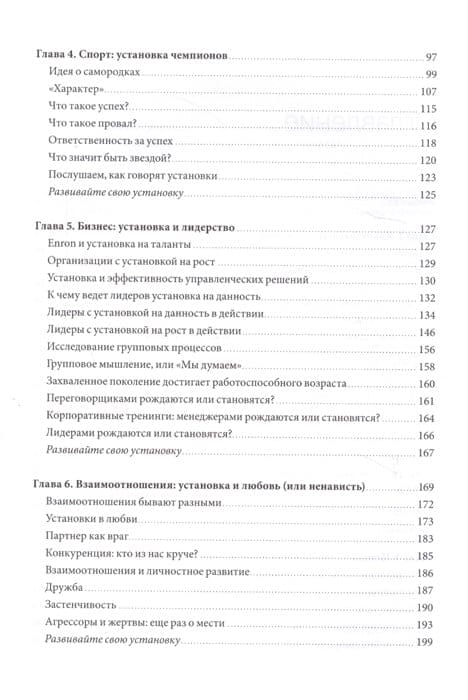 Всемирно известный психолог Кэрол Дуэк, не одно десятилетие изучающая проблематику успехов и достижений, открыла и научно доказала влияние внутренних установок на личность. В этой книге вы узнаете, как установка на данность обрекает людей на провал, а установка на рост — открывает путь к самореализации, выстраиванию успешной карьеры и налаживанию счастливых взаимоотношений с окружающими в любом возрасте. А еще — как можно привить такую установку и себе, и другим. Книга будет интересна не только родителям, преподавателям и тренерам, но также всем, кто занимается управлением людьми или нацелен на личностный рост.