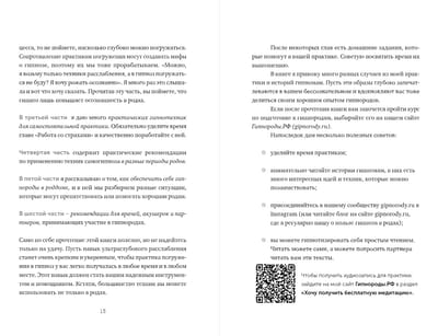 - Книга содержит QR-код со ссылкой на бесплатную аудио-медитацию.