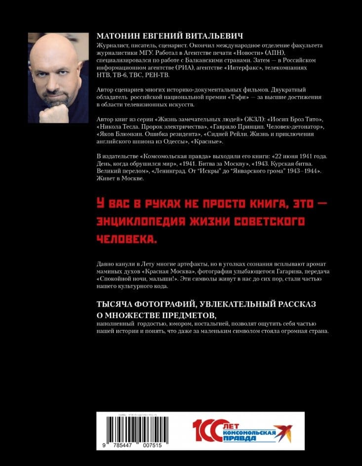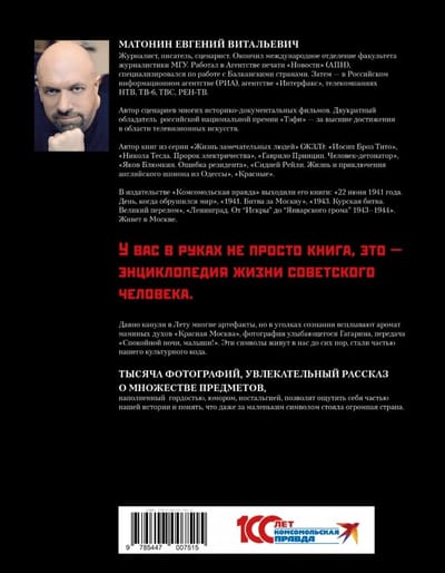 Читая эти рассказы, написанные вроде бы серьезно, но в то же время с юмором и тонкой иронией, граждане бывшего СССР, возможно, с ностальгией вспомнят свое детство и молодость. А более молодые люди смогут узнать для себя много нового. И, рассматривая фотографии вещей советской эпохи (в книге их более 1000), лучше понять своих пап и мам, дедушек и бабушек. Ведь это они строили огромные заводы, носили пятиконечные звездочки и гонялись за «чаем со слоном». И радовались желтым бочкам с квасом не меньше, чем полетам космических кораблей, которые, как говорили в знаменитой советской кинокомедии, «бороздят просторы Вселенной».
