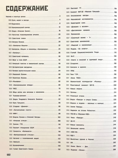 - Всеобъемлющее повествование о главных предметах, которые стали символами СССР: более 150 глав и 1000 фотографий, расположенных в хронологическом порядке.