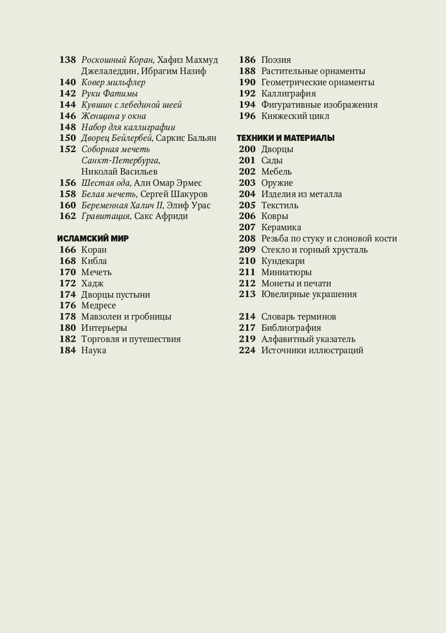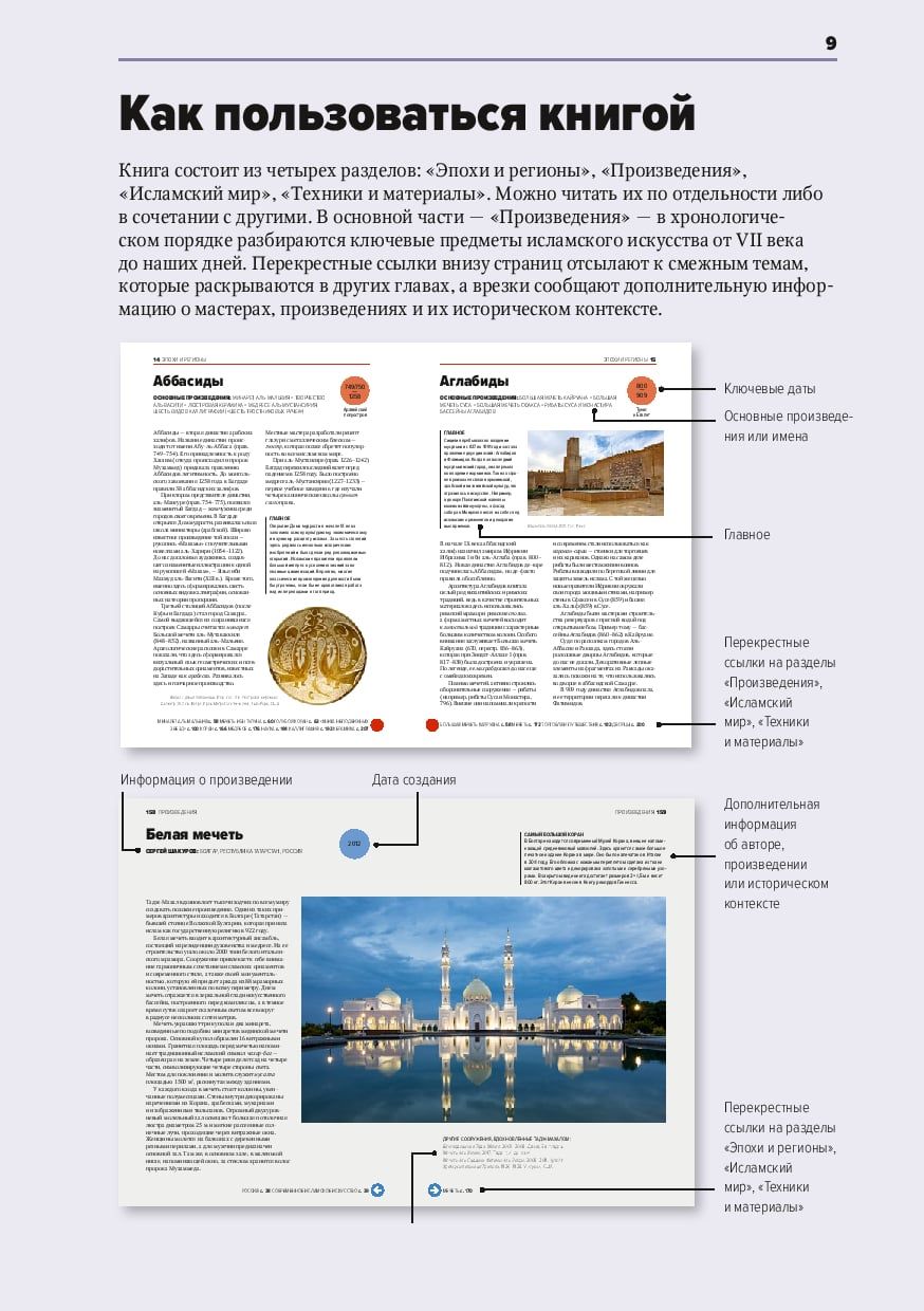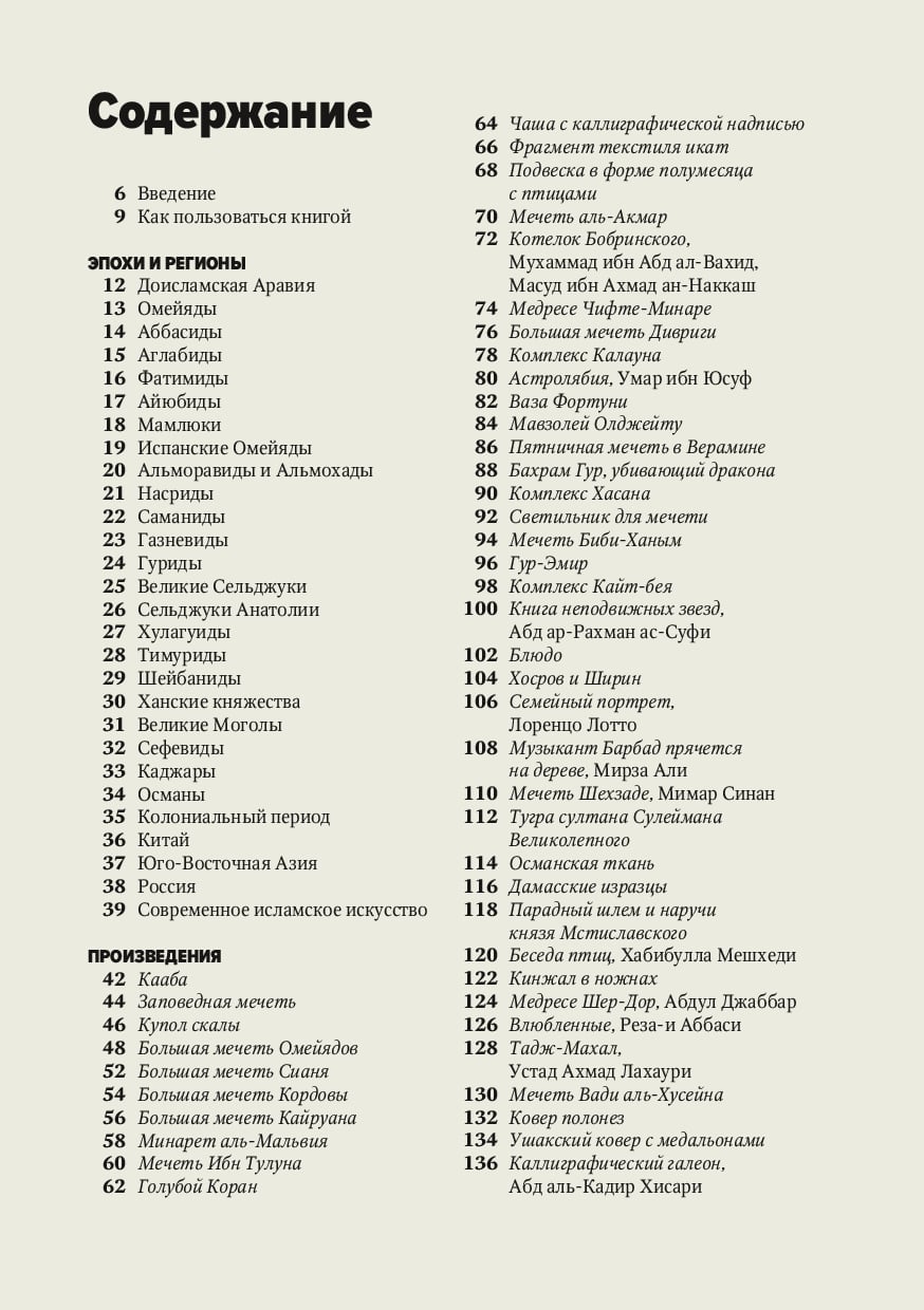 Искусствоведы используют термин «исламское искусство» для описания огромного спектра визуальной культуры, созданной в обширных регионах мира — от Испании до Индии, от Турции до Северной Африки, от Центральной до Юго-Восточной Азии — в которых ислам был доминирующей религией или в которых появились и обитают исламские общины. В этой книге мы рассмотрим исламское искусство более широко, чем принято в традиции европейского искусствоведения, включив сюда также Россию, Китай и Юго-Восточную Азию. Мы будем говорить об исламском мире как о цивилизации, где создание предметов искусства, с одной стороны, подчинено религиозным догмам, а с другой — вступает в противоречие с ними и демонстрирует попытку обойти запреты. Персидские ковры и каджарские портреты, изникская керамика и дамасская сталь, дворцы пустыни и медресе, изящные каллиграммы и миниатюры, татарский шамаиль и кайтагская вышивка, Большая мечеть Омейядов и Тадж-Махал, поэзия и наука, Великий шелковый путь и Дорога ладана, а также другие знаковые достижения исламской цивилизации собраны здесь, под одной обложкой.