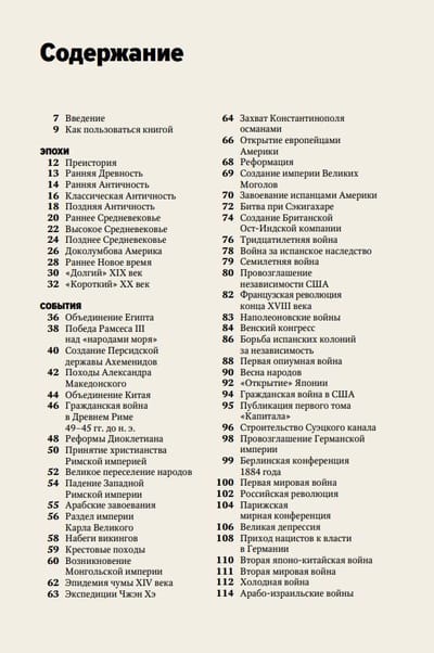 Эта книга — кратчайший справочник по всей мировой истории, в котором собраны ключевые эпохи, события, имена и технологии с древнейших времен и до наших дней. Он поможет увидеть историю мира «с высоты птичьего полета», как единое целое, заполнить пробелы в знаниях и осознать множество неочевидных взаимосвязей.