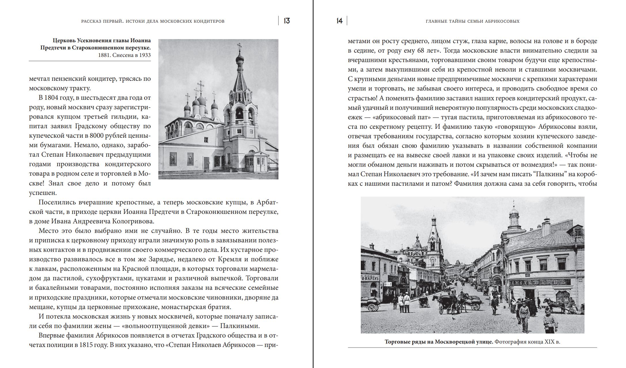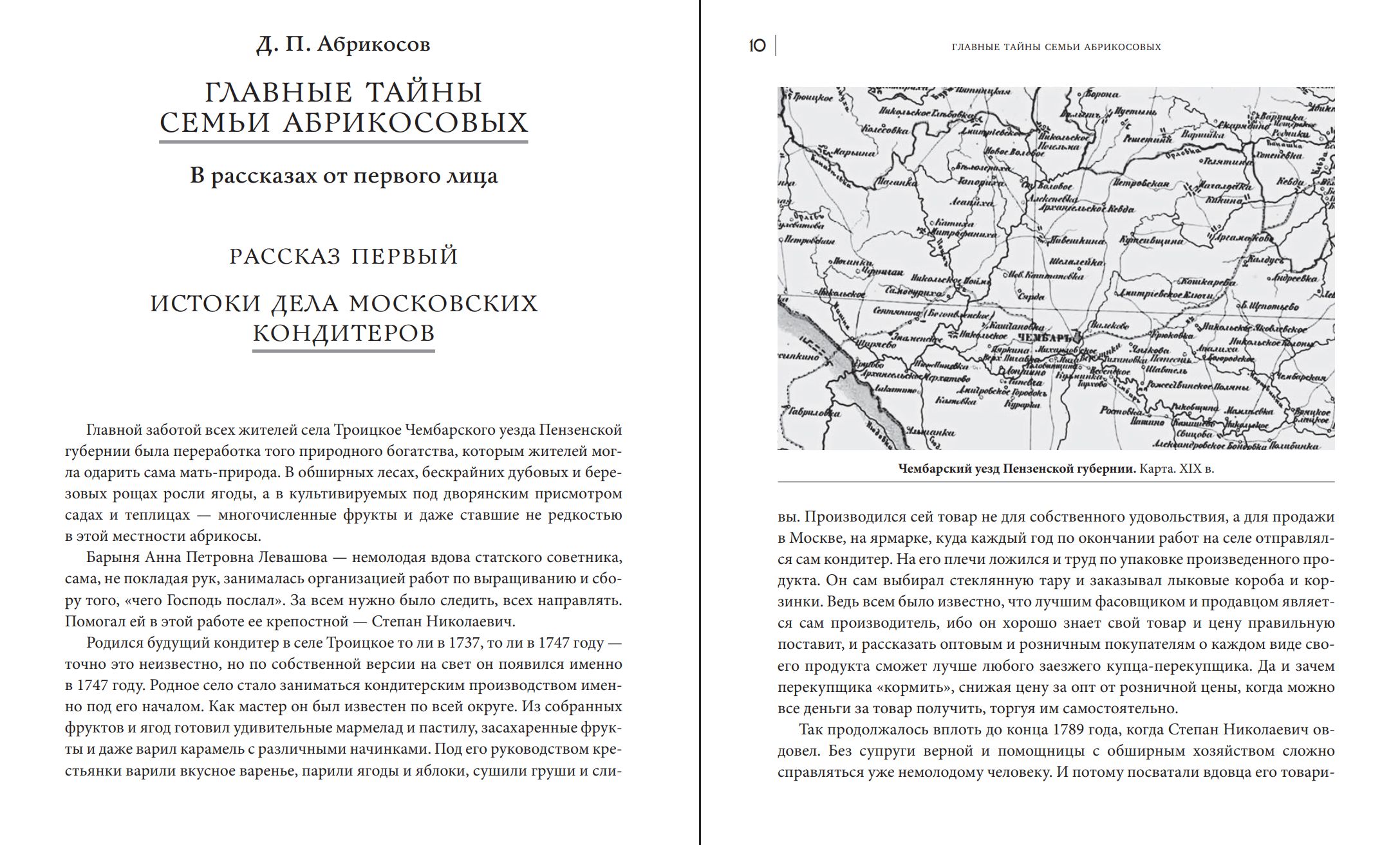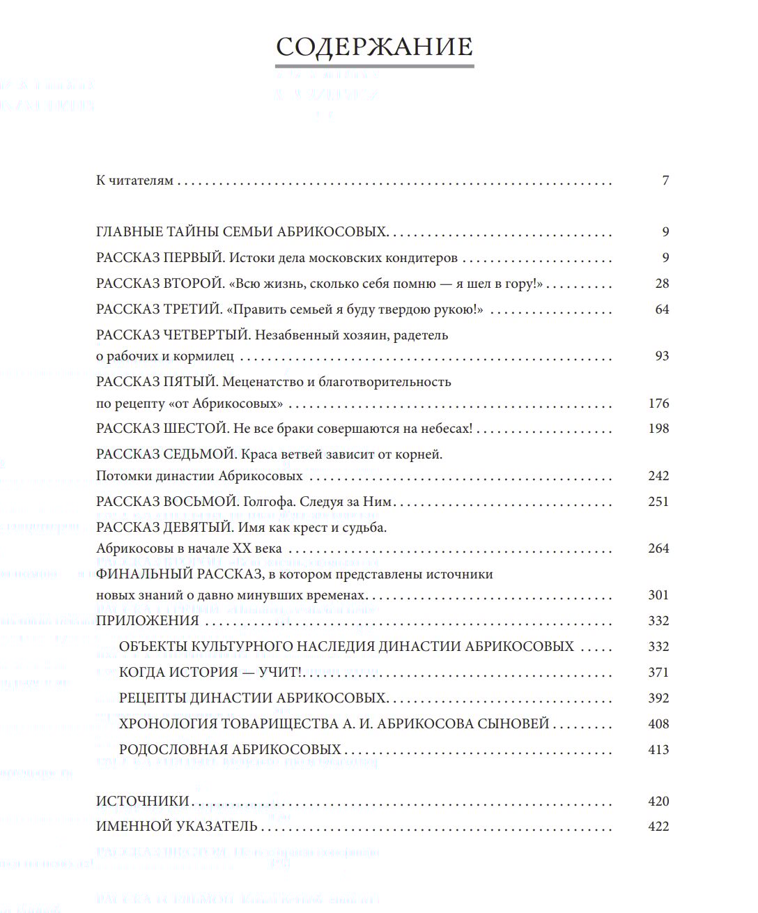 Книга Дмитрия Абрикосова посвящена истории его семьи — прославленных кондитеров и меценатов. Рассказы от первого лица знакомят читателей с историей предпринимательской деятельности «Товарищества А. И. Абрикосова Сыновей» с момента зарождения до наших дней, с организацией промышленного производства кондитерских изделий в Москве и Крыму, с открытием сети фирменных магазинов по всей России, с участием во Всероссийских промышленных выставках, с созданием знаменитого родильного дома имени А. А. Абрикосовой на Миусском поле.