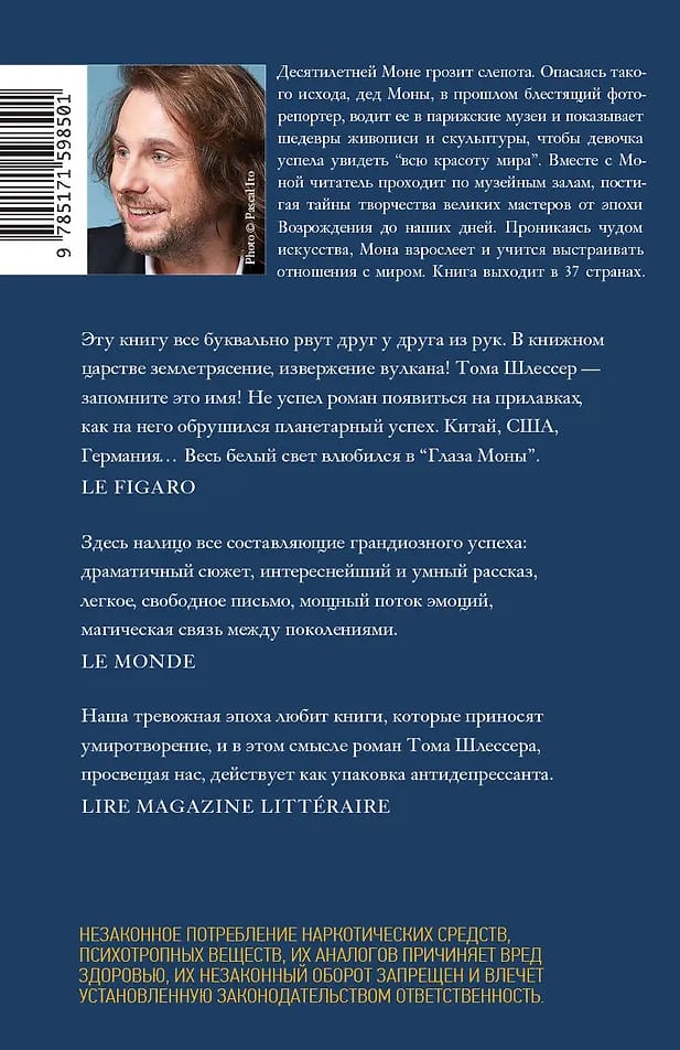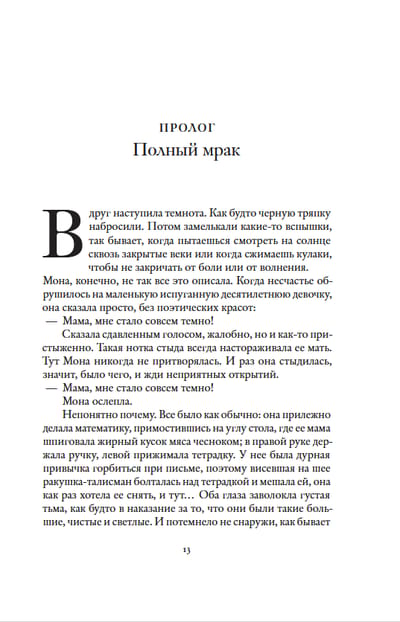 «Глаза Моны» Тома Шлессера — книга уникальная, «роман взросления» и одновременно увлекательнейшее путешествие в мир искусства. Десятилетняя Мона неожиданно теряет зрение.