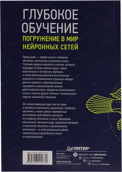 Перед вами - первая книга о глубоком обучении, написанная на русском языке. Глубокие модели оказались ключом, который подходит ко всем замкам сразу: новые архитектуры и алгоритмы обучения, а также увеличившиеся вычислительные мощности и появившиеся огромные наборы данных, привели к революционным прорывам в компьютерном зрении, распознавании речи, обработке естественного языка и многих других типично "человеческих" задачах машинного обучения. Эти захватывающие идеи, вся история и основные компоненты революции глубокого обучения, а также самые современные достижения этой области, доступно и интересно изложены в книге. Максимум объяснений, минимум кода, серьезный материал о машинном обучении и увлекательное изложение - в этой уникальной работе замечательных российских ученых и интеллектуалов.