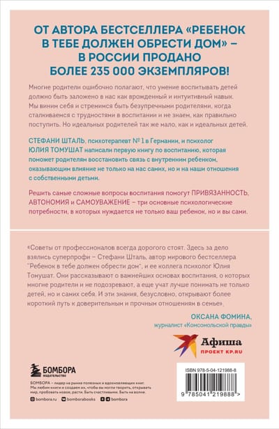 «Воспитывать, не воспитывая» — так можно описать заботу родителя, который дарит своему ребенку тепло родного гнезда и крылья для свободной и счастливой жизни. Стефани Шталь, психотерапевт № 1 в Германии, и психолог Юлия Томушат написали первую книгу о воспитании, которая поможет родителям наладить связь с внутренним ребенком, — тем, кто оказывает влияние не только на нас самих, но и на наши отношения с собственными детьми. Решить самые сложные вопросы воспитания помогут привязанность, автономия и самоуважение — три основные психологические потребности, в которых нуждается не только ваш ребенок, но и вы сами. Из этой книги вы узнаете, как: избежать ошибок в отношениях родителей и детей; обрести баланс между привязанностью и независимостью; установить здоровые границы, чтобы связь была крепче; принять уникальный характер своего ребенка.