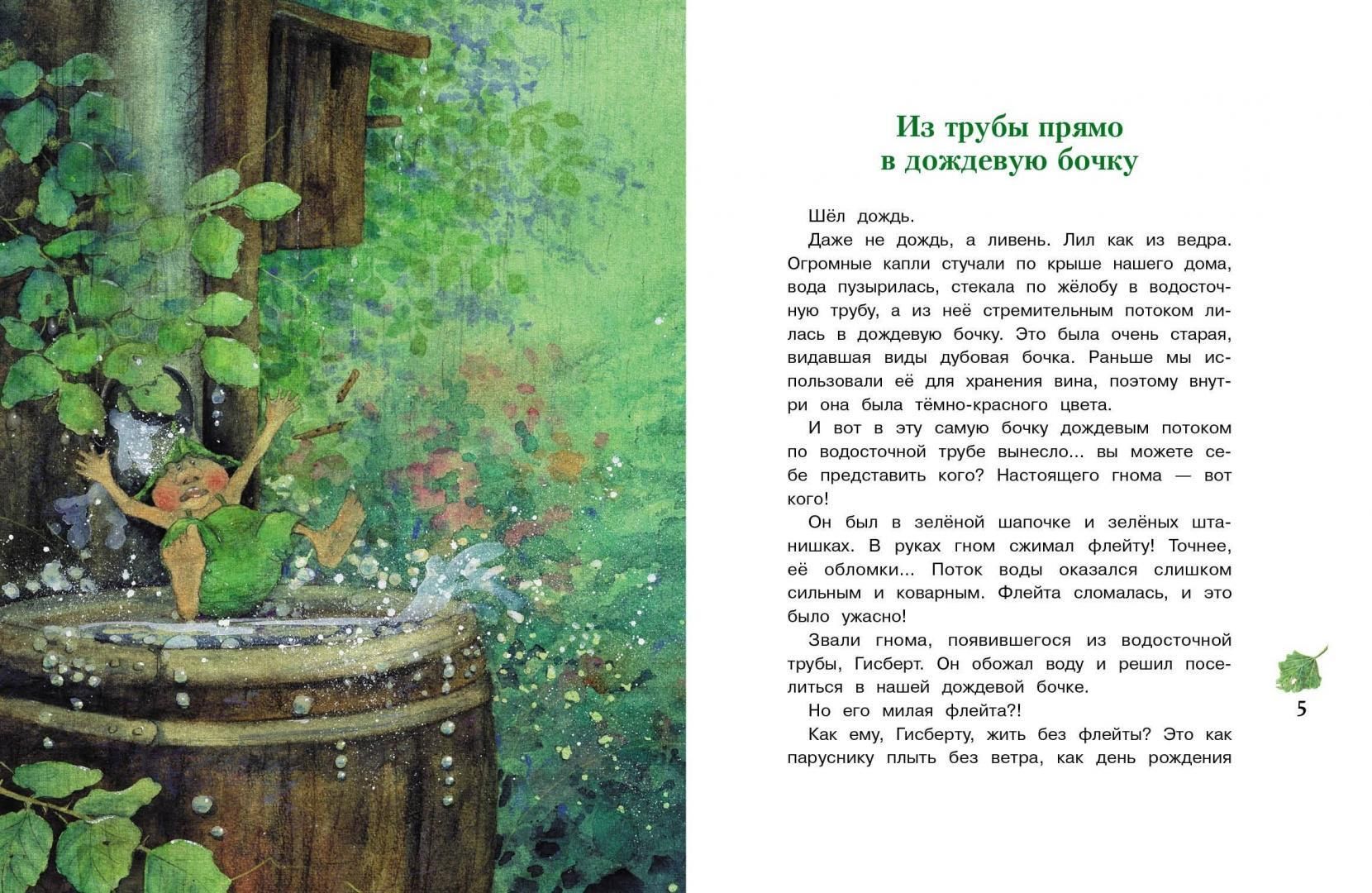 Непоседливый гном из водосточной трубы, по имени Гисберт, придуманный и нарисованный известной немецкой художницей Даниэлой Дрешер, покоряет сердца детей и взрослых по всему миру. Первая книга оказалась столь популярной, что вскоре за ней последовали вторая и третья. В чём же секрет успеха «Гнома из водосточной трубы»? Главный герой очень добрый, по-детски наивный и любознательный. Его жизнелюбие не знает границ, и поэтому ему прощаются все шалости. Короткие истории о приключениях маленького гнома наполнены теплом солнечных лучей, тихим шелестом листвы, ароматом садовых цветов и шумом летнего дождя. А в иллюстрациях чувствуется искренняя любовь Даниэлы Дрешер к природе. Мы надеемся, что российские читатели, познакомившись с Гисбертом, будут с нетерпением ждать следующих книг. Итак, продолжение следует...
