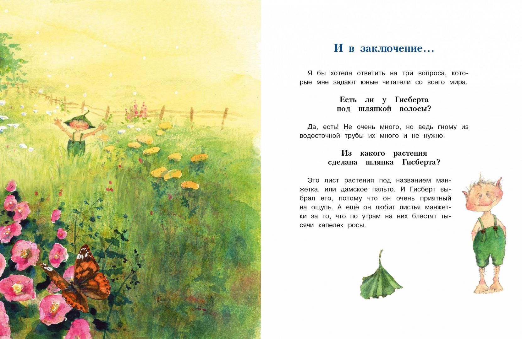 Увлекательные и добрые истории про гнома из водосточной трубы по имени Гисберт придумала и нарисовала немецкая художница Даниэла Дрешер. Непоседливый и простодушный гном завоевал сердца детей и их родителей во многих странах — от США до Китая. В 2018 году первая книга о Гисберте оказалась на полках российских читателей и была тепло принята ими. Через год в России вышла вторая книга, ставшая не менее популярной. И вот, наконец, увидела свет долгожданная  третья! В ней обаятельного гнома из водосточной трубы ждут новые открытия и приключения. Конечно, он не сможет оставить в беде тонущего утёнка или равнодушно смотреть, как маленькая непослушная свинка разоряет огород. Гисберт всегда придёт на помощь и найдёт выход из любой ситуации! Его не испугают ни быстрое течение ручья, ни шипящий уж. А между делом он успеет узнать много всего интересного, а также сочинить новые стихи и сыграть любимые  мелодии  на  своей  чудесной  флейте.
