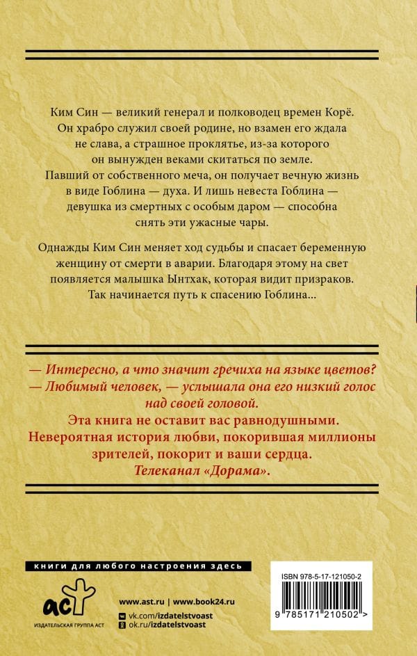 Ким Син — великий генерал и полководец времен Корё. Он храбро служил своей родине, но взамен его ждала не слава, а страшное проклятье, из-за которого он вынужден веками скитаться по земле. Павший от собственного меча, он получает вечную жизнь в виде Гоблина — духа. И лишь невеста Гоблина — девушка из смертных с особым даром — способна снять эти ужасные чары.